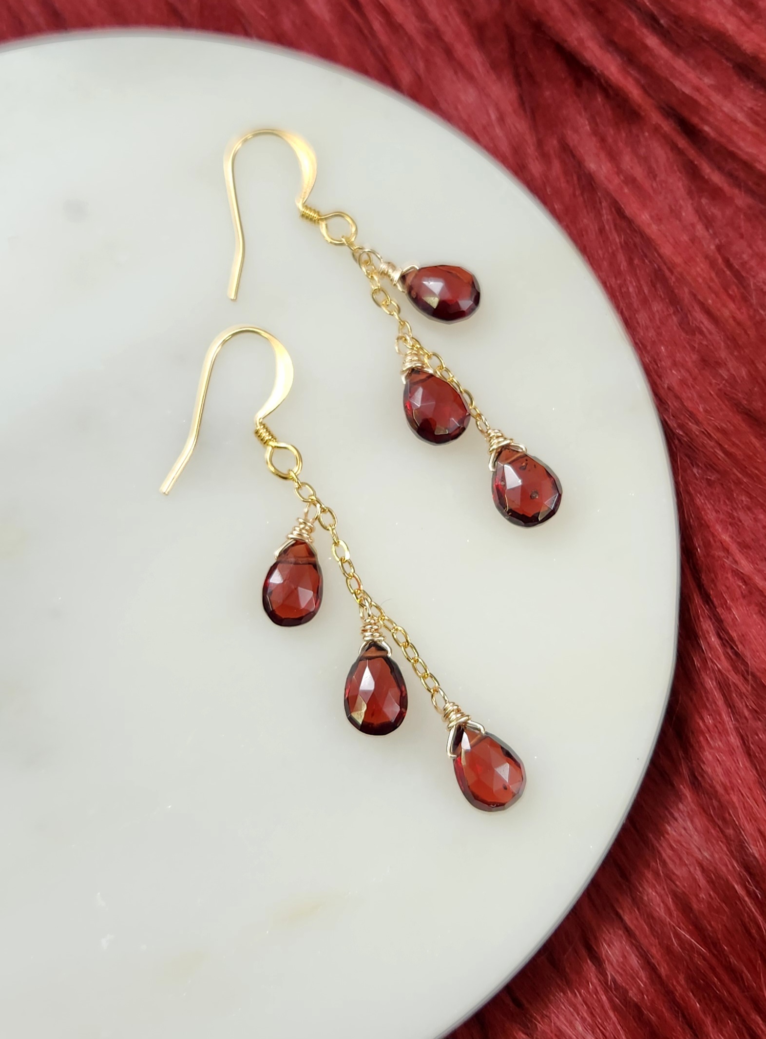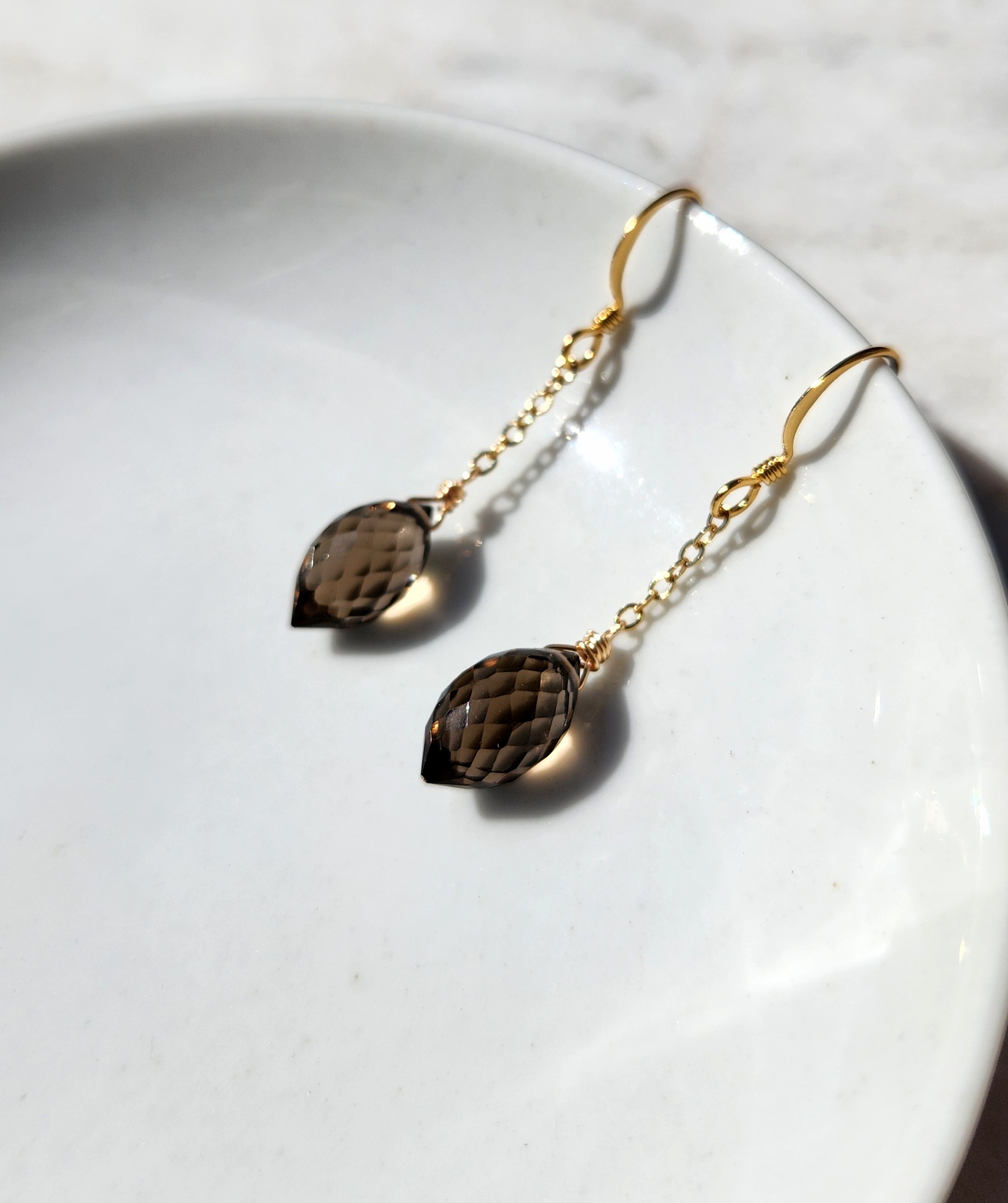 Smoky Quartz Dew Droplet Gold Chain Earrings