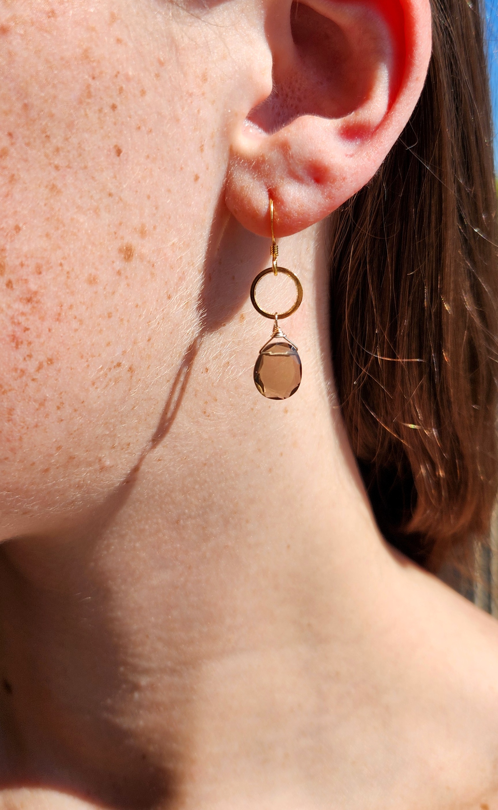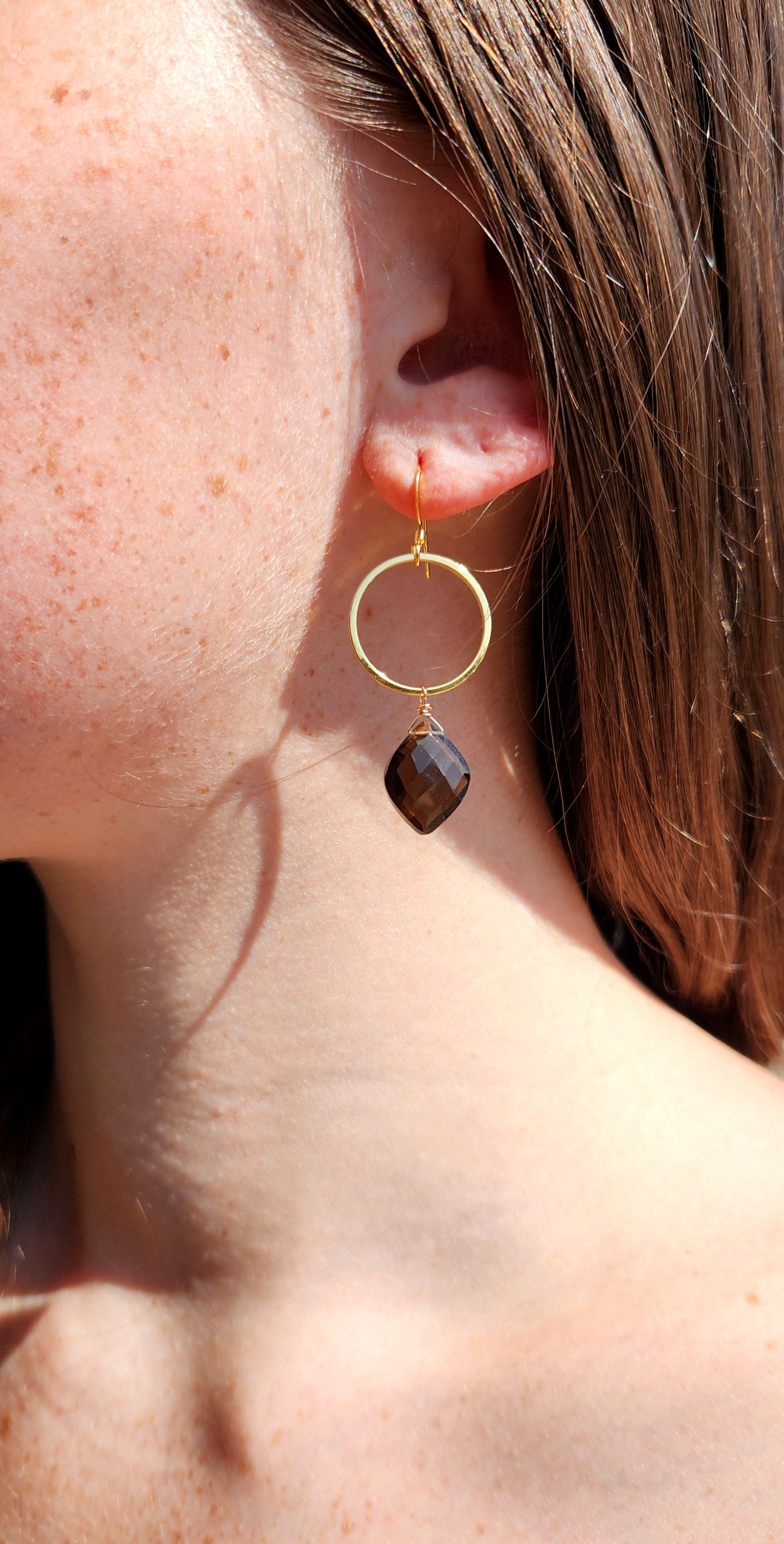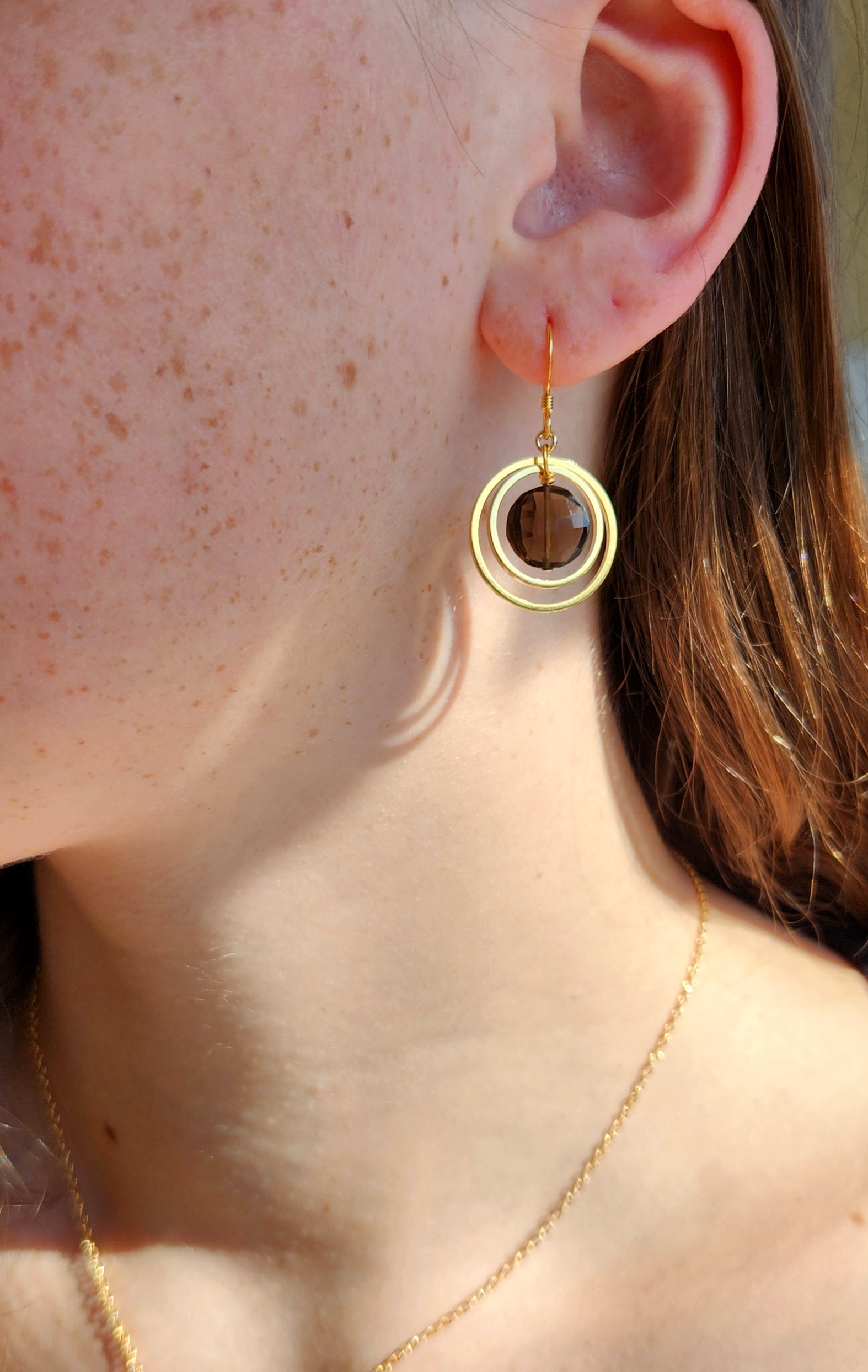 Smoky Quartz Marquise Stone Gold Circle Earrings