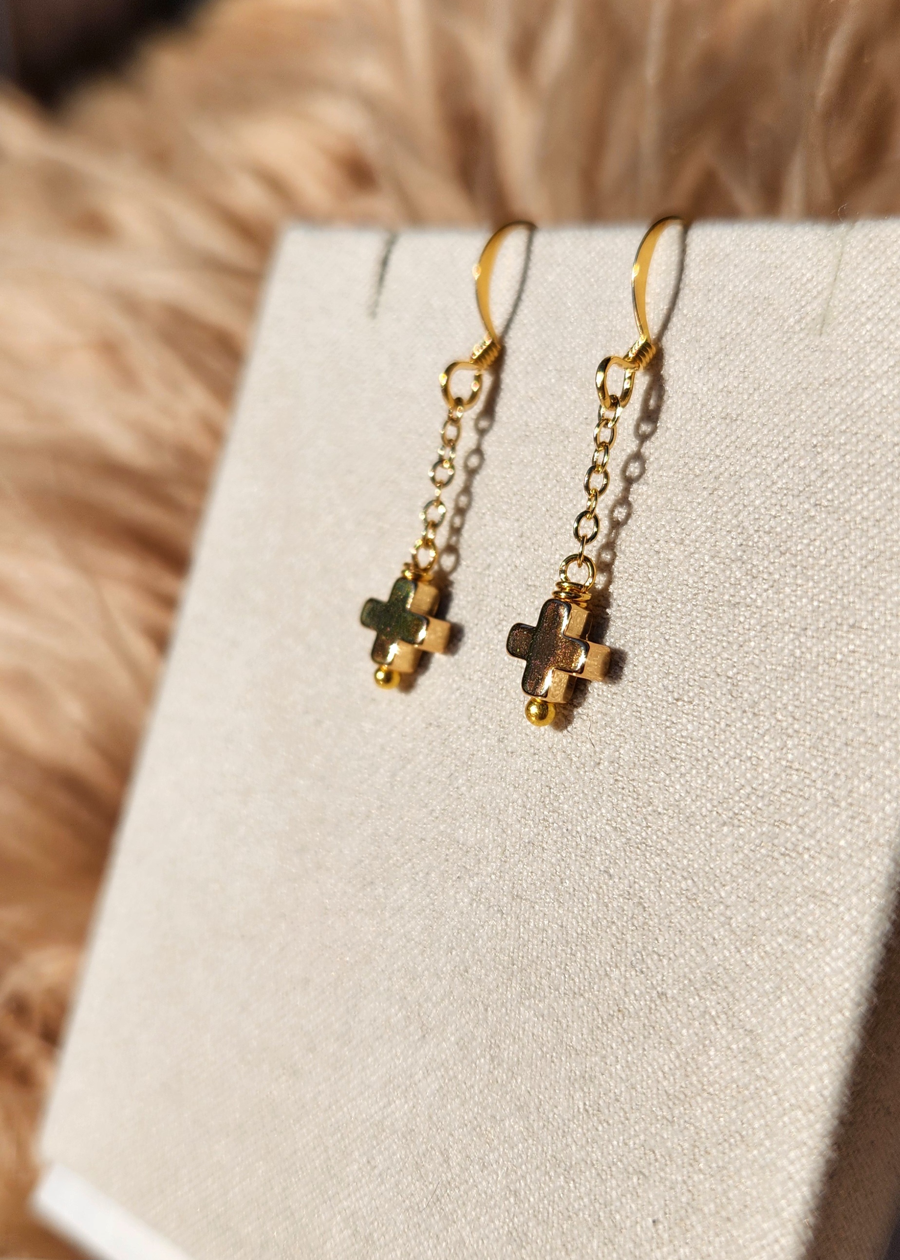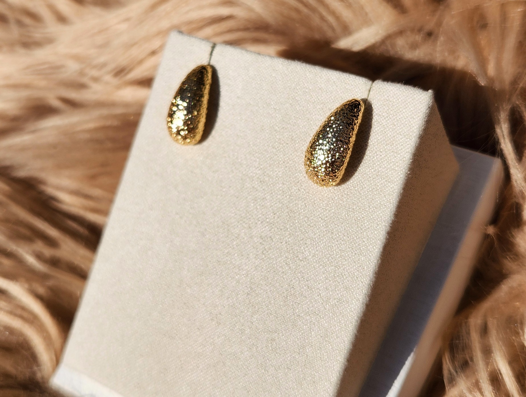 Gold Foil Smoky Quartz Textured Dangle Earrings