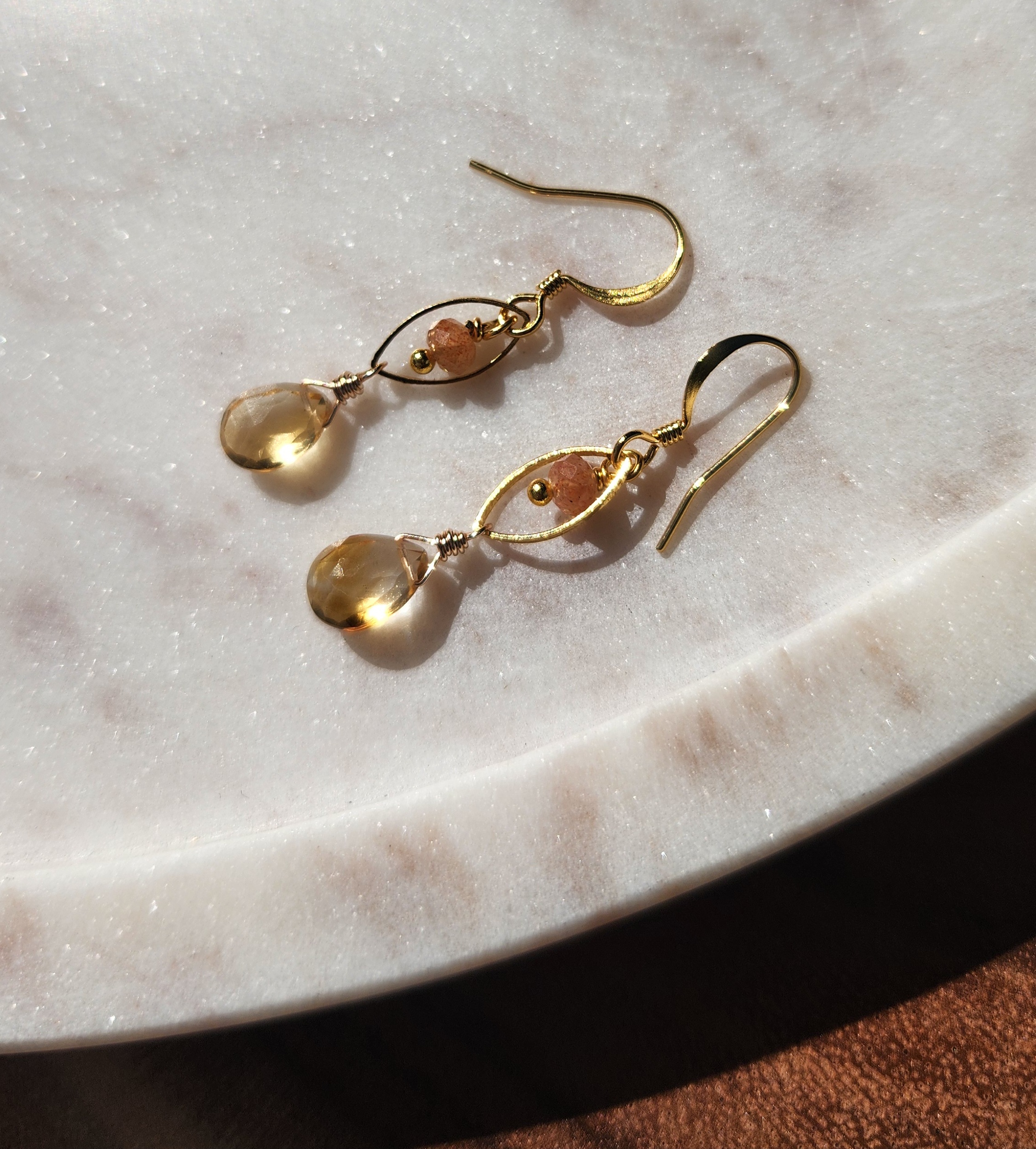 Citrine and Sunstone Dainty Gold Marquis Earrings