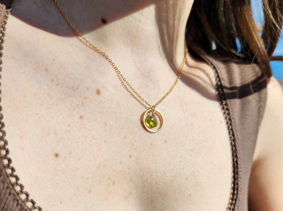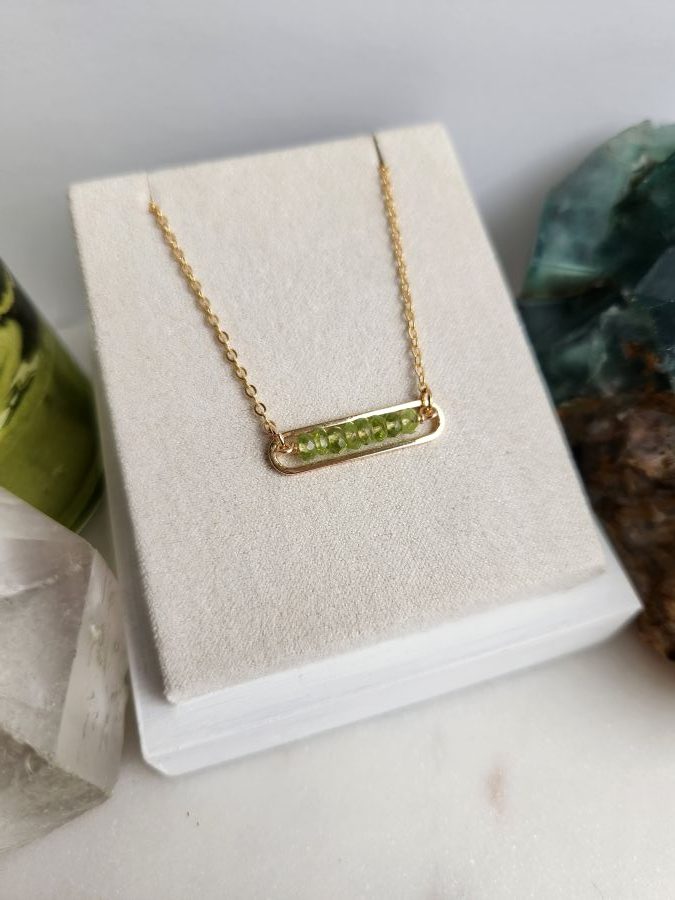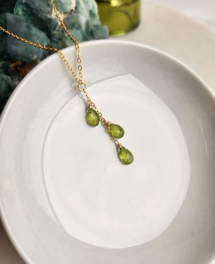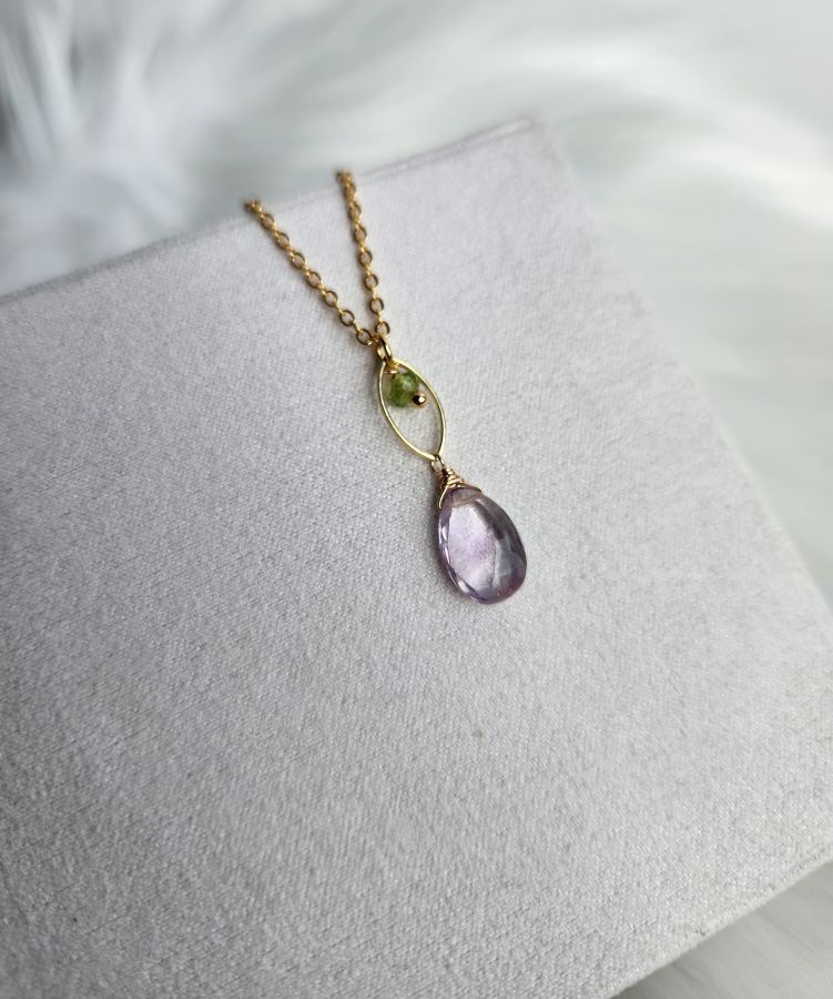 Light Amethyst and Peridot Dainty Marquis Necklace