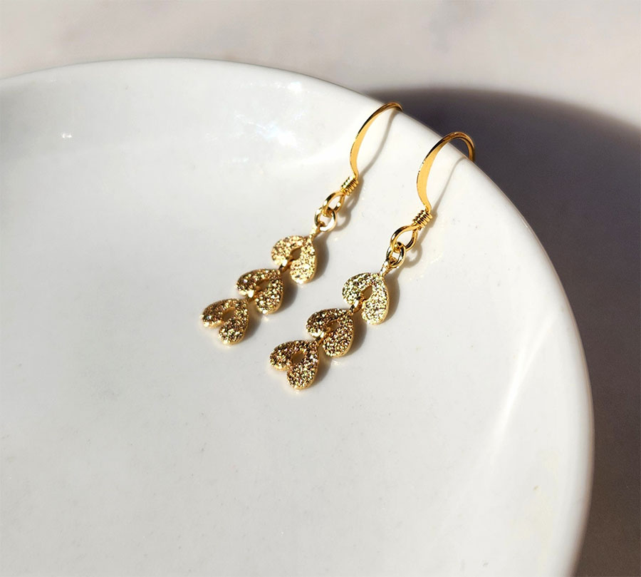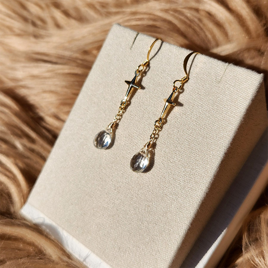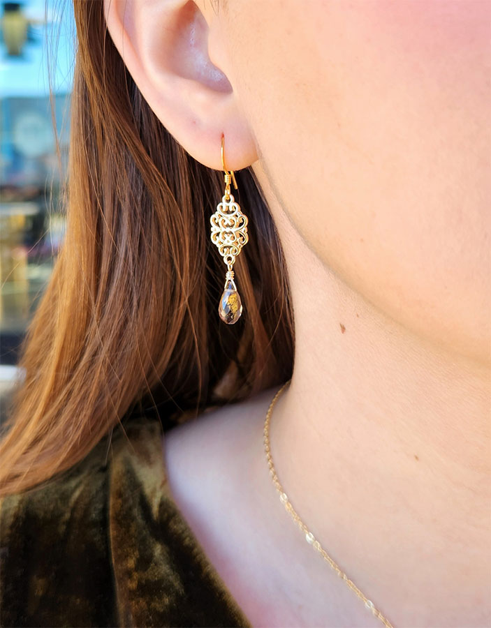 Gold Foil Smoky Quartz Textured Dangle Earrings
