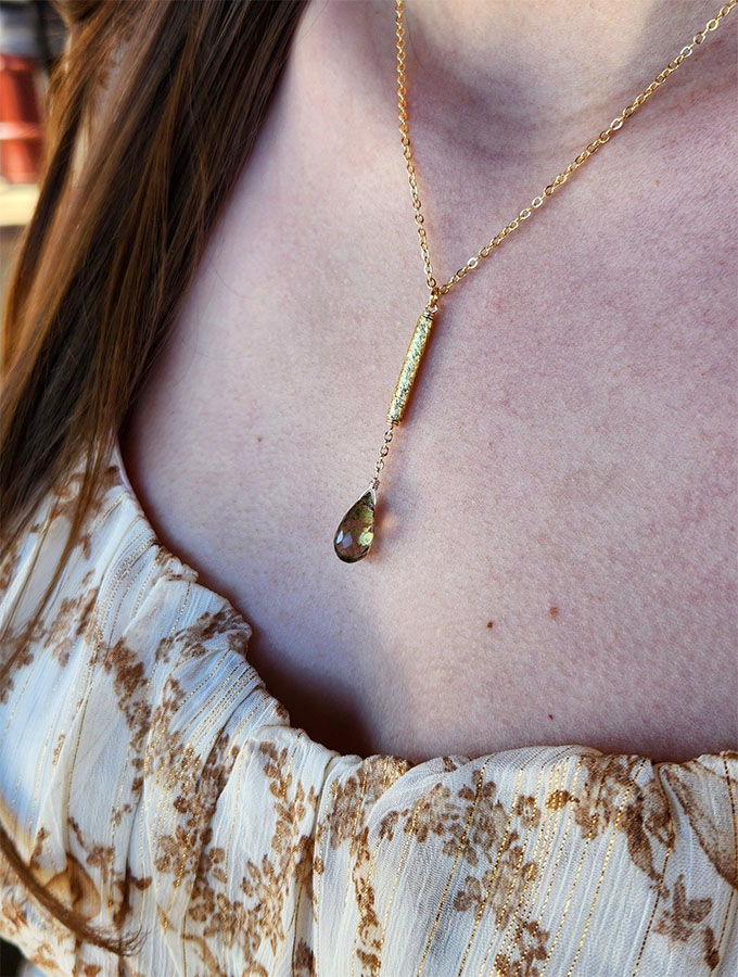 Gold Foil Smoky Quartz Textured Dangle Y Necklace
