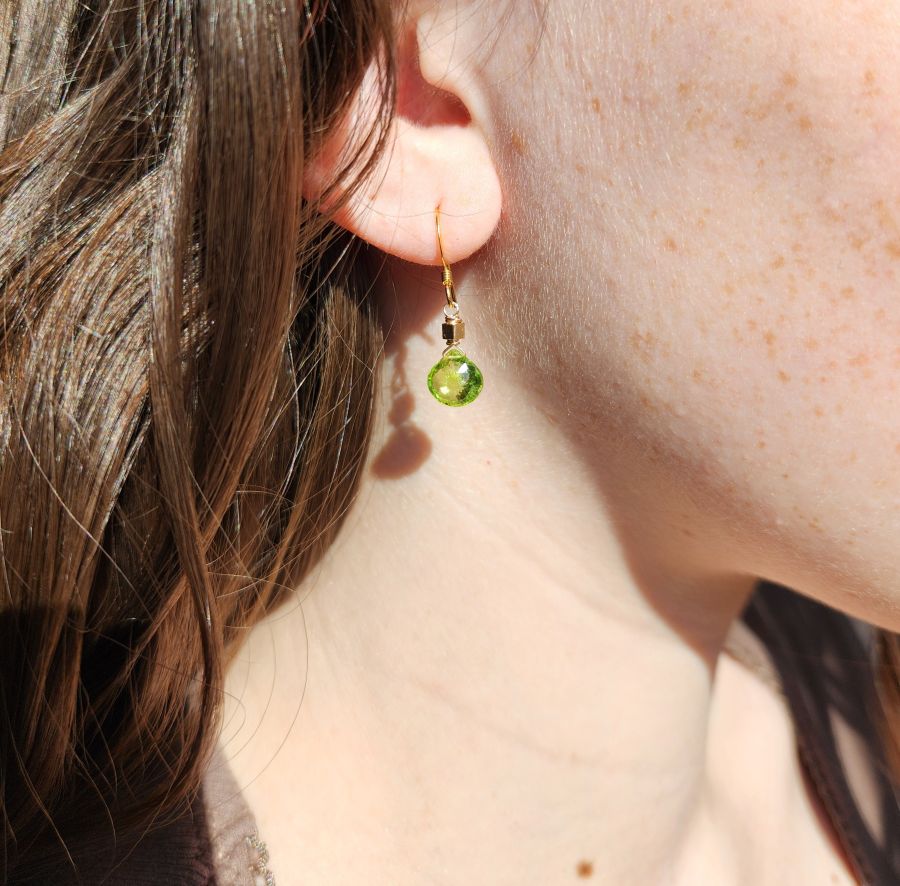 Peridot and Cube Gold Earrings