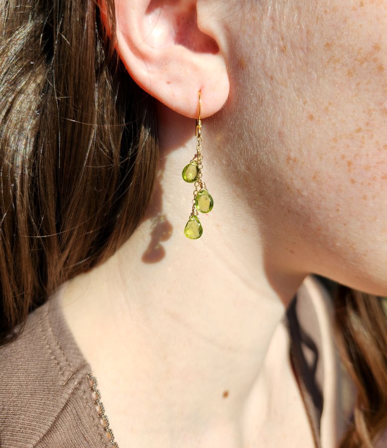 Peridot Triple Vertical Chain Gold Earrings