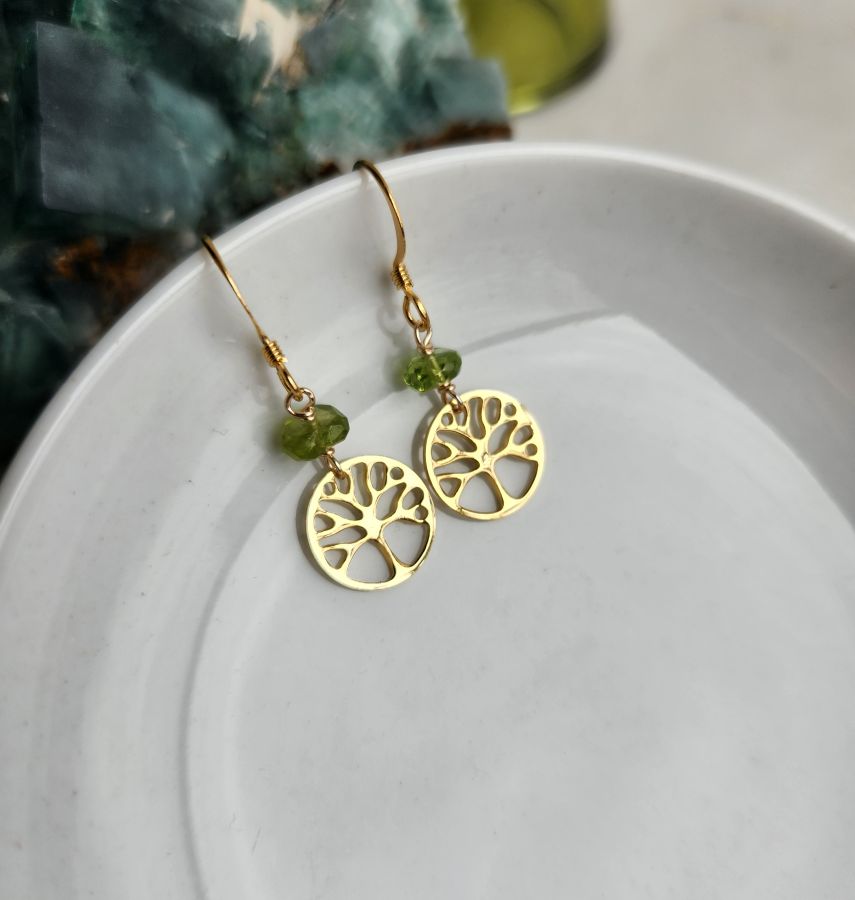 Peridot Tree of Life Charm Earrings