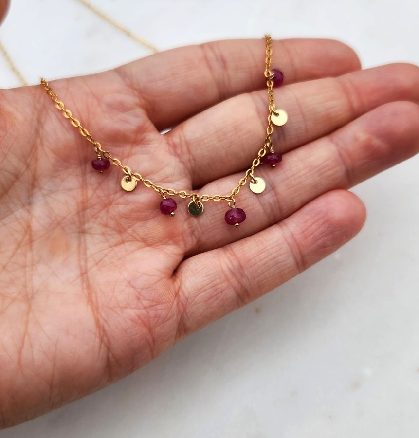 Rubies and Gold Filled Disc Necklace