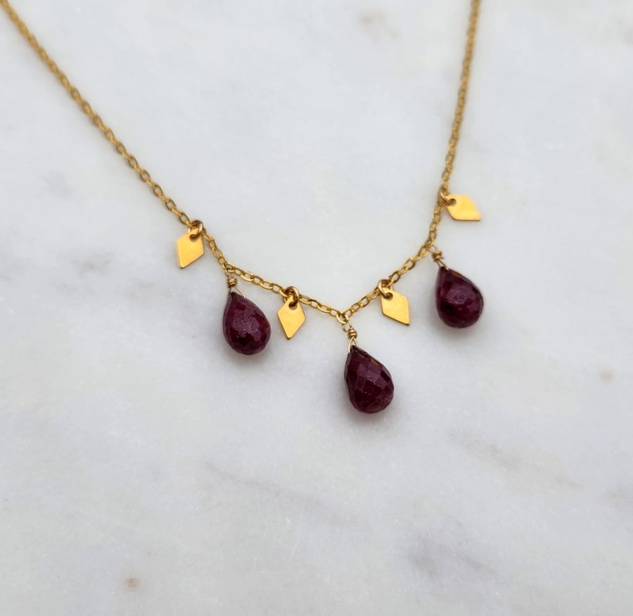 Ruby and Gold Filled Bar Necklace