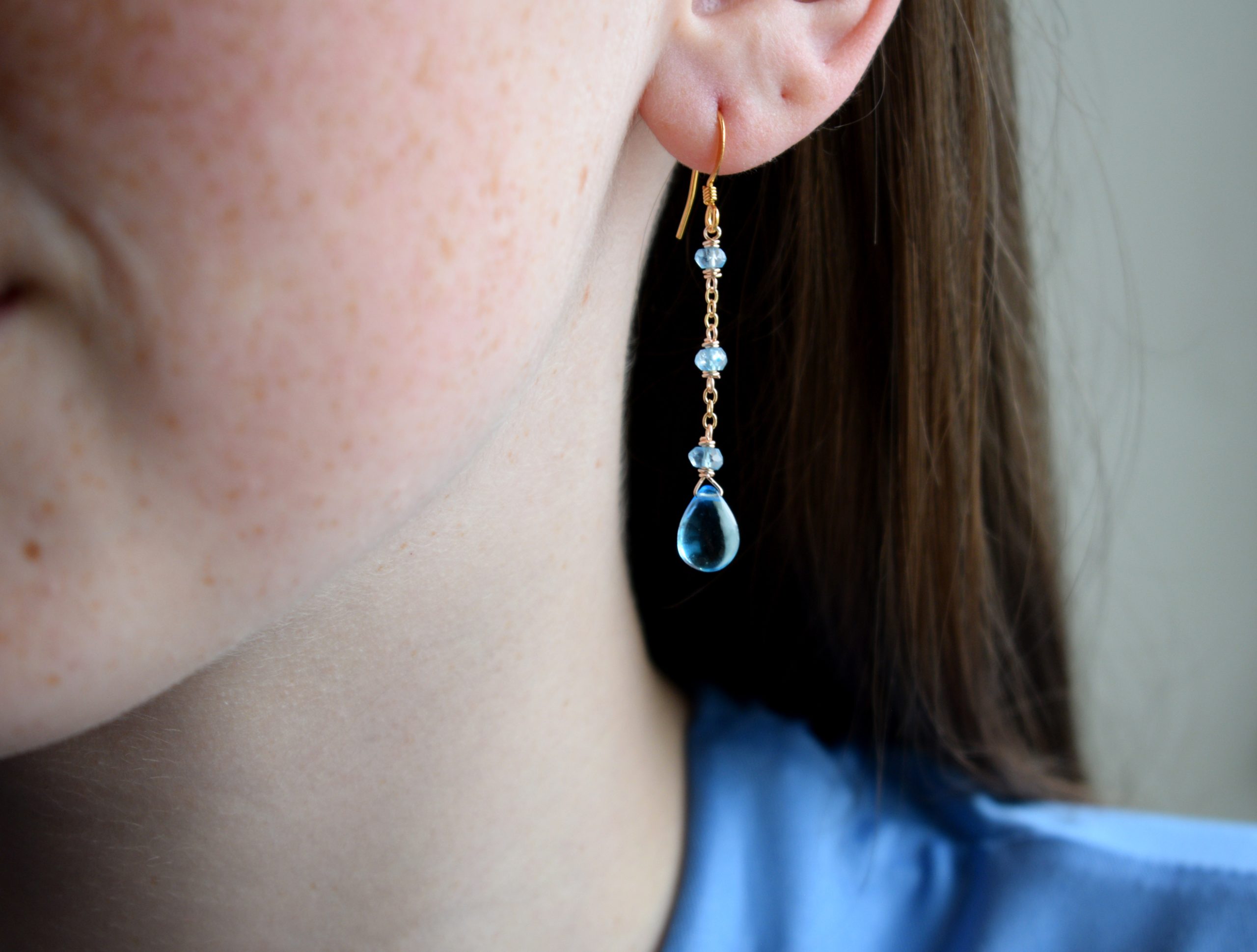 Smooth blue quartz chain and rondelle earrings.