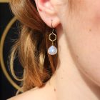 EDGY PETAL rainbow moonstone raw brass dainty hexagon earrings.