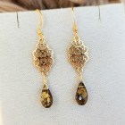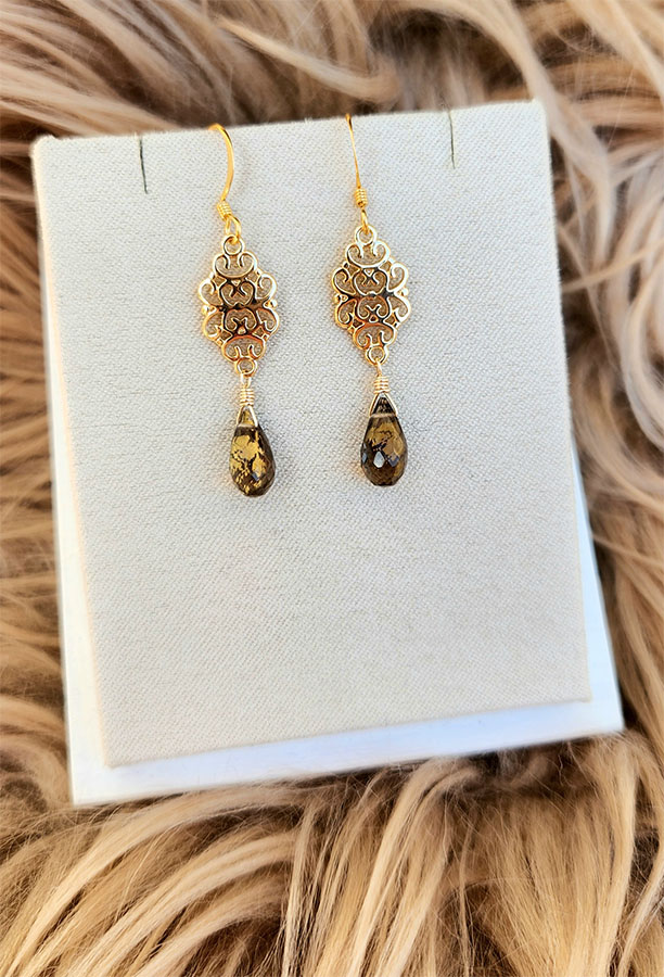 Medieval inspired gold foil smoky quartz gold plated filigree earrings.