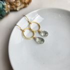 Green amethyst gold circle earrings. Metals are 18kt gold plate over brass. All metals are nickel-free and lead-free.