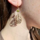 Peridot large gold feather teardrop earrings. Metals are 18kt gold plate over brass. All metals are nickel-free and lead-free.