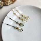 Prehnite square and round beaded gold chain earrings. Metals are 18kt gold plate over brass. All metals are nickel-free and lead-free.