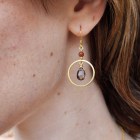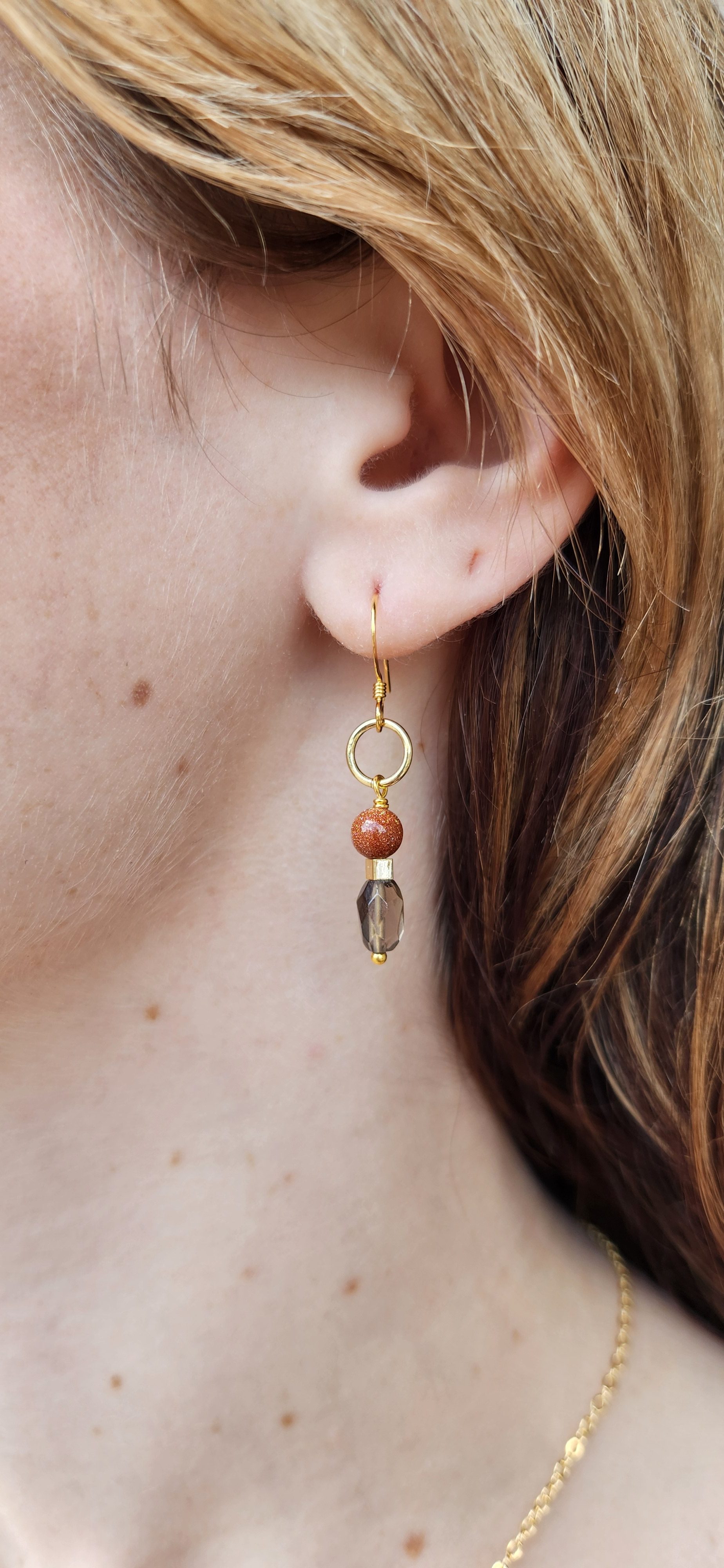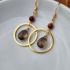 Smoky quartz and goldstone gold circle earrings