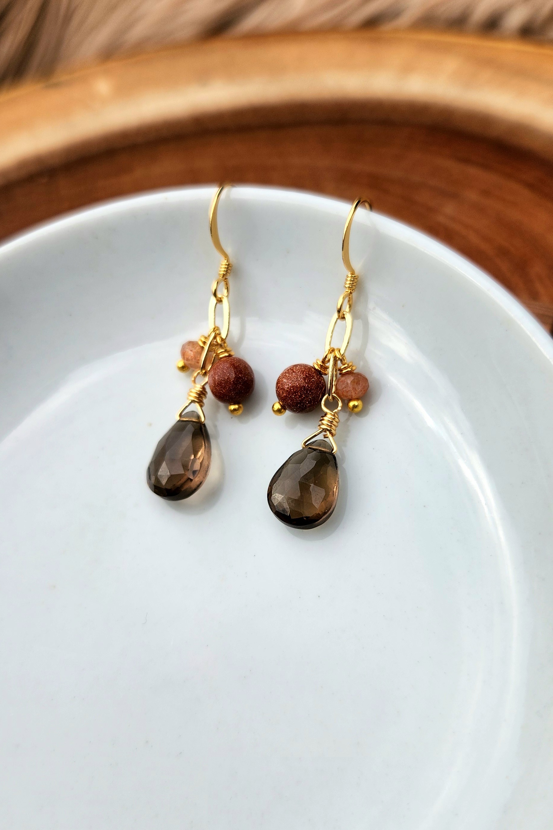 Smoky Quartz, Goldstone and Sunstone Cluster Earrings