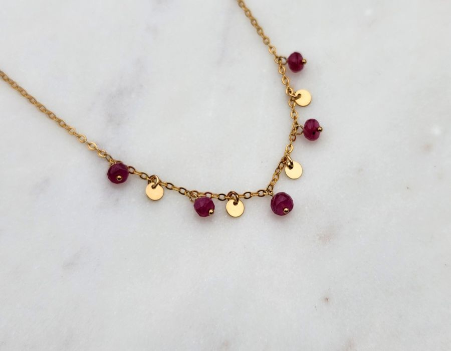 Genuine ruby 14kt gold filled necklace. This necklace is higher quality gold fill, not gold plated and features real rubies.