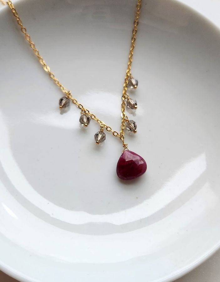 Genuine ruby and Swarovski crystal 14kt gold filled necklace. This necklace is higher quality gold fill, not gold plated and features real rubies.
