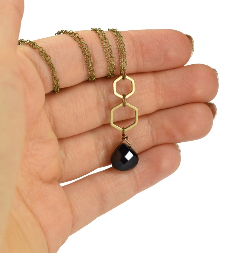 EDGY PETAL black onyx double hexagon necklace.
