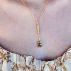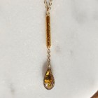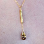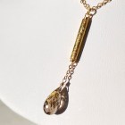 Medieval inspired gold foil smoky quartz textured tube gold plated Y necklace.