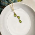 Peridot triple vertical chain gold necklace. Metals are 18kt gold plate over brass. All metals are nickel-free and lead-free.