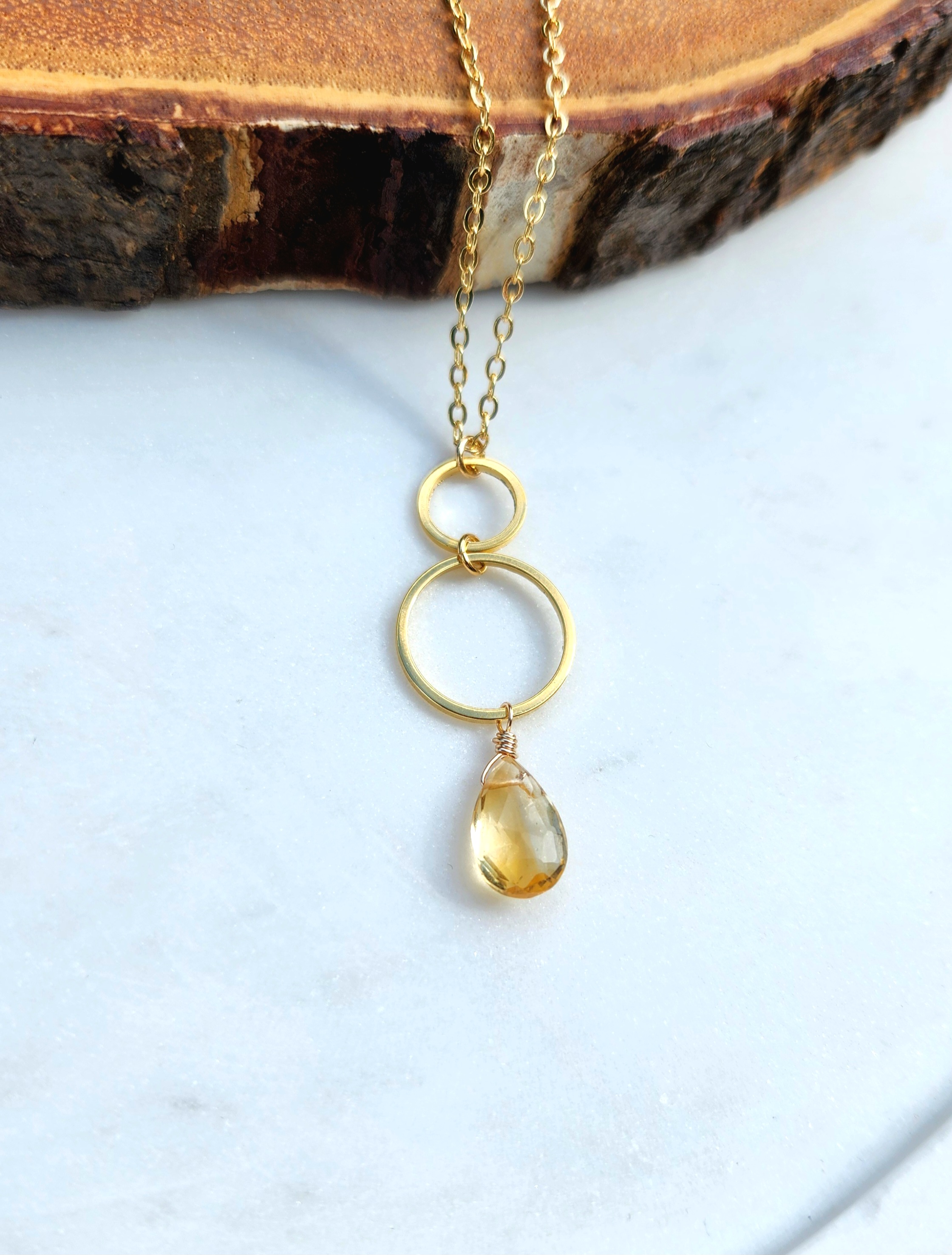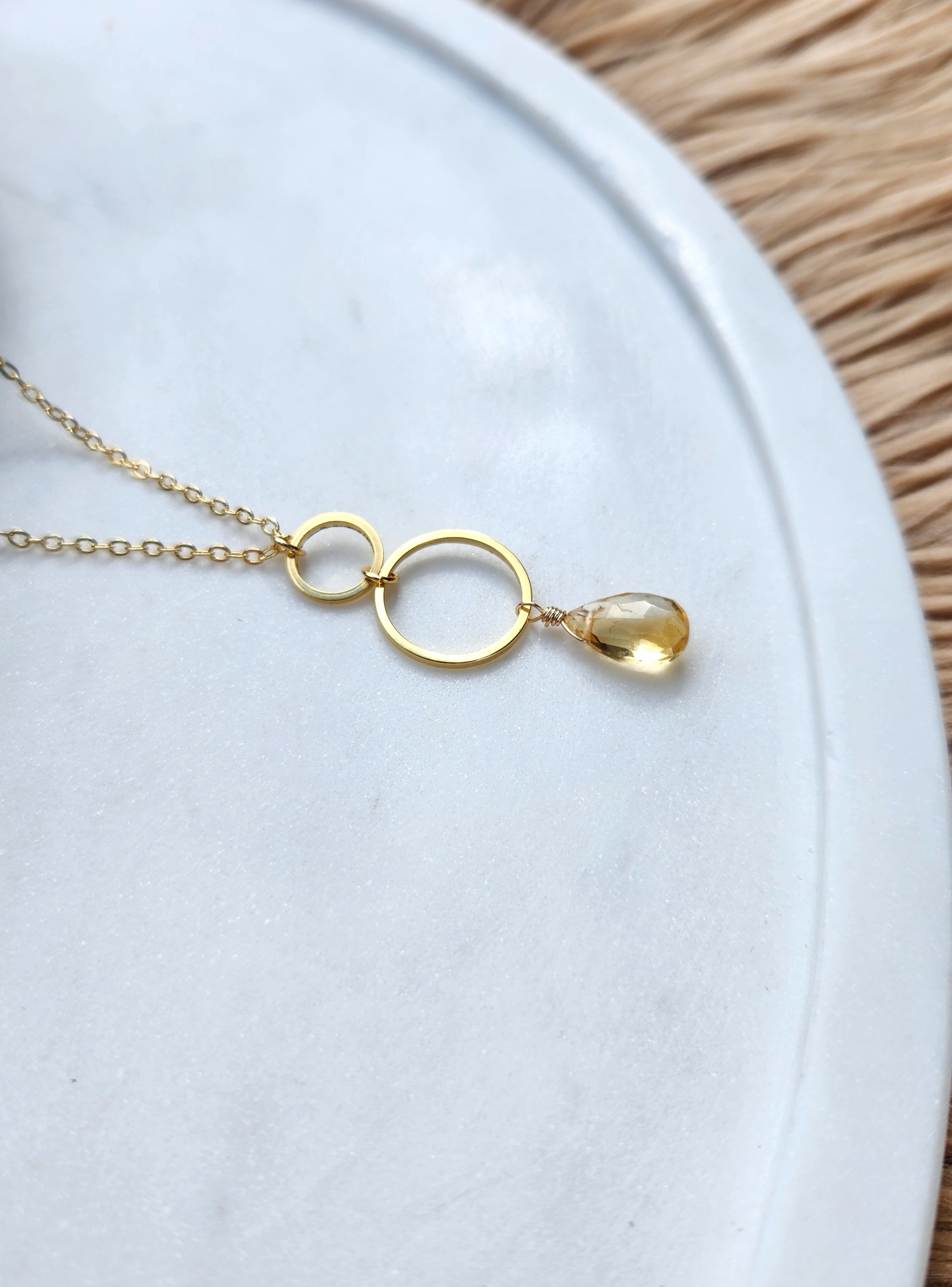 Citrine gold plated stacked circle necklace.