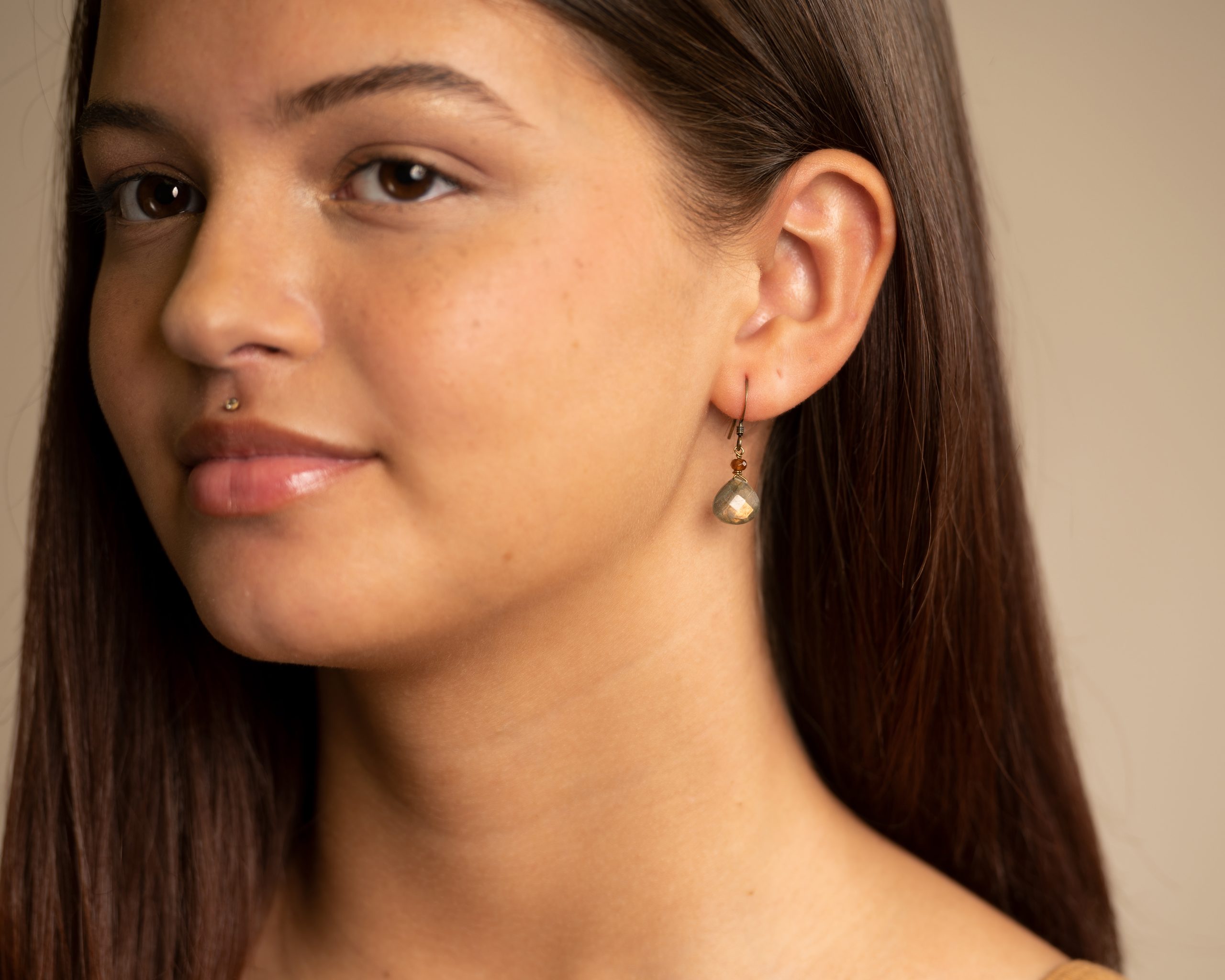 Brown Labradorite Marquis Earrings with Smoky Quartz